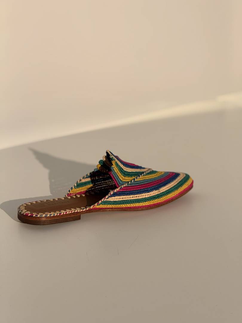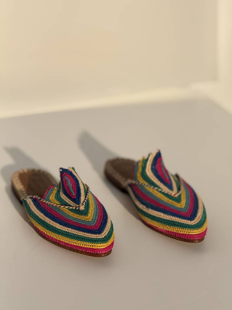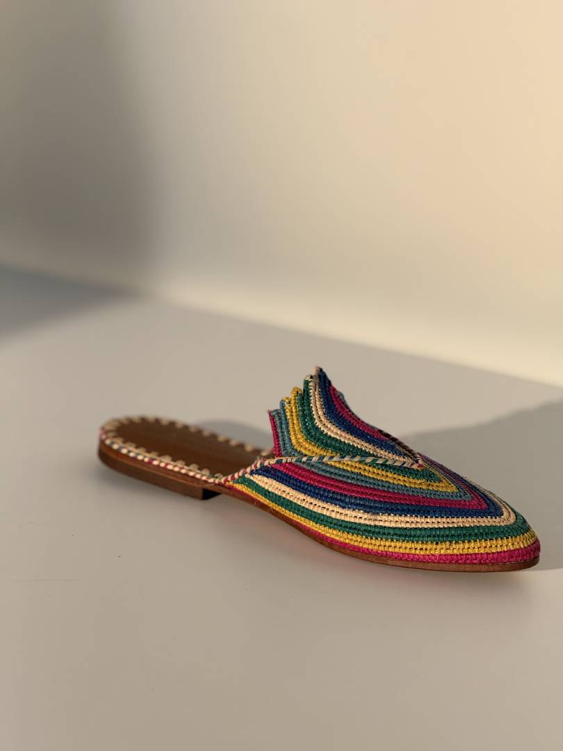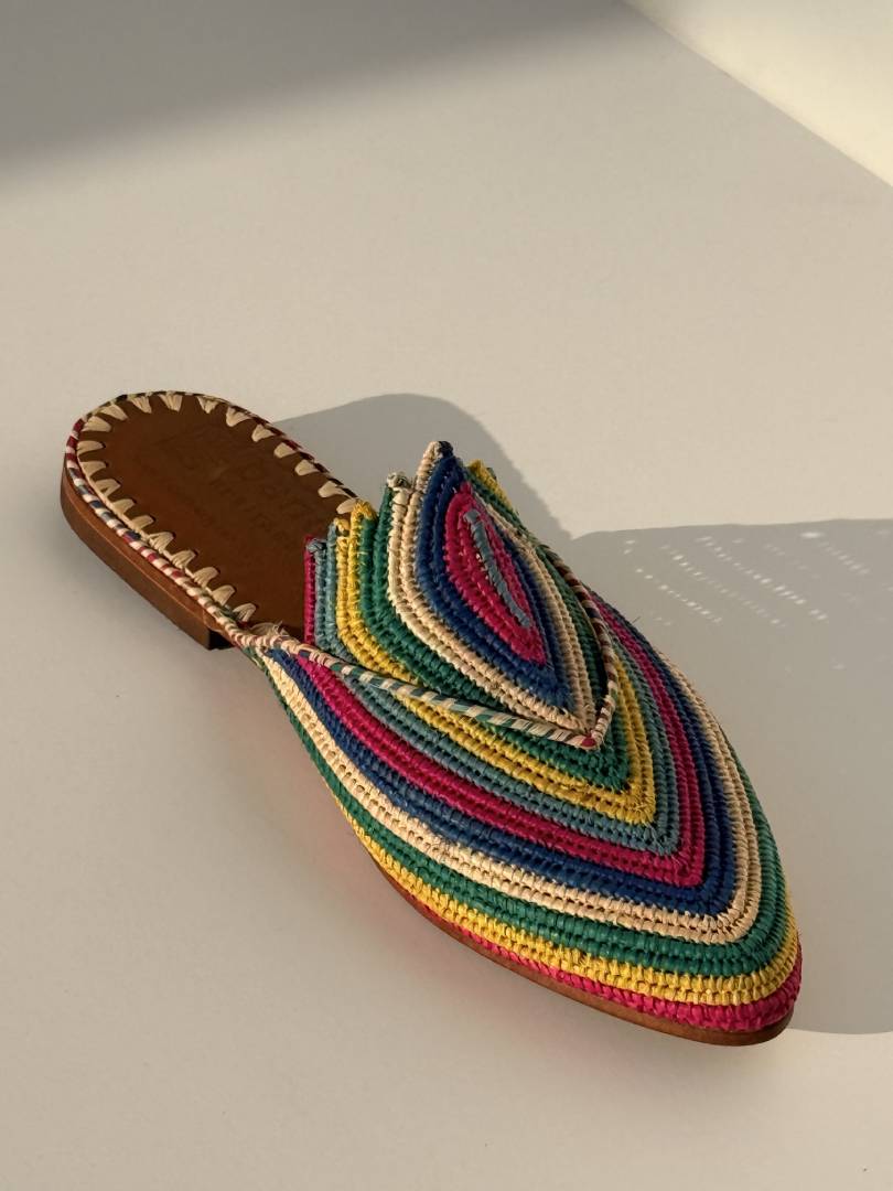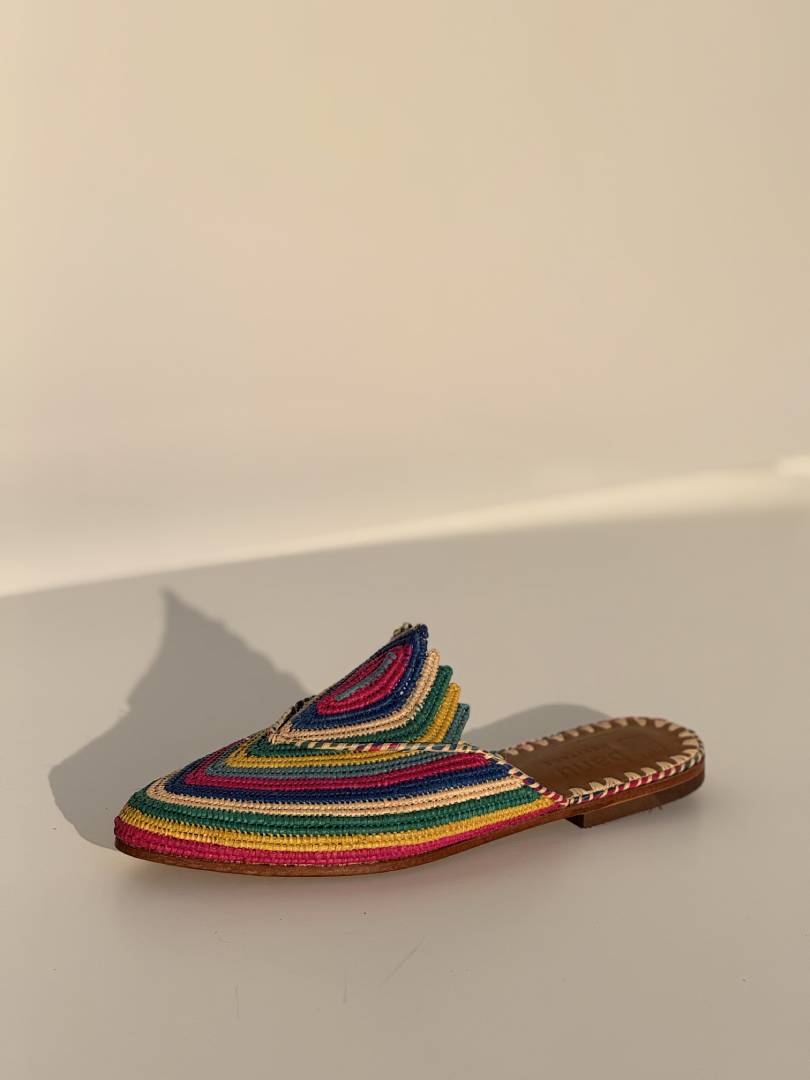 A lightweight sandal defined by a single woven raffia band across the foot. The open construction allows maximum breathability, while the flat leather sole keeps the profile low and natural. Its simplicity highlights the texture of the raffia and the precision of the handwork.